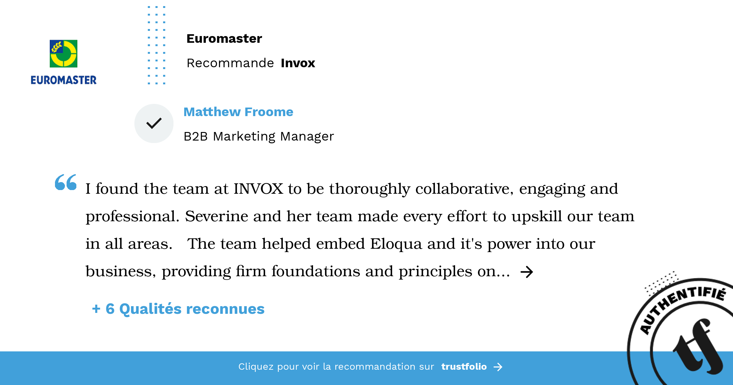 Nous avons été certifiés Qualiopi à la fin de l’année 2021 (honnêtement, on a transpiré dur !). Nous étions déjà un organisme de formation, mais nous avons accéléré sur cette partie avec un catalogue complet de 14 formations autour de la Demand Generation et la création d’une vraie Académie Invox.